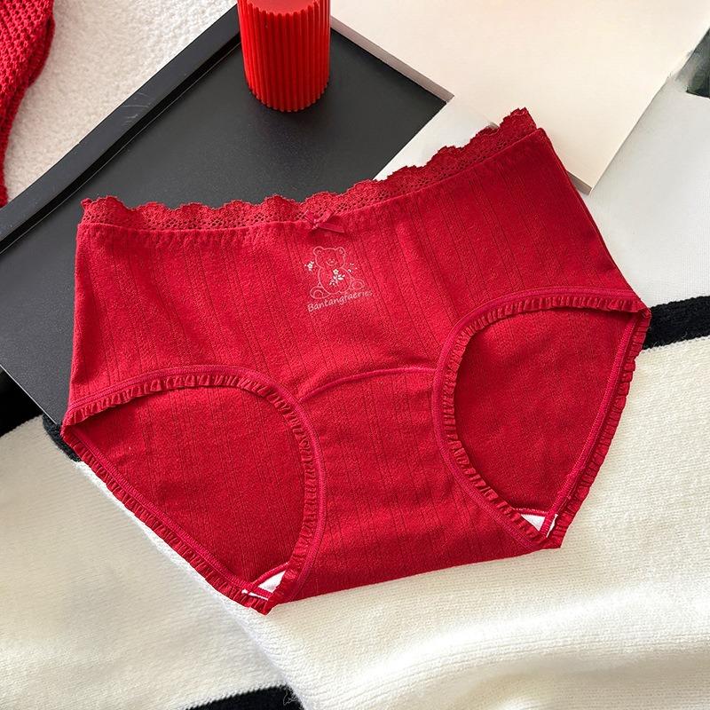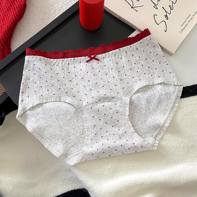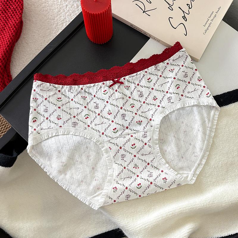 Женские весенне-осенние трусы из чистого хлопка с цветочным принтом, красные, 10A, антибактериальные