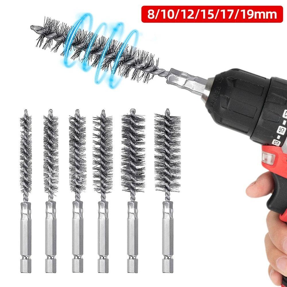 2. Детали размера: Имеется 6 различных размеров щеток с внутренним отверстием из нержавеющей стали, включая диаметры 8 мм.(0,31 дюйма), 10мм(0,39 дюйма), 12мм(0,47 дюйма), 15мм(0.59в), 17мм(0.67 дюйма) и 19мм(0.75в), Различные размеры позволят удовлетворить ваши разнообразные потребности в уборке.