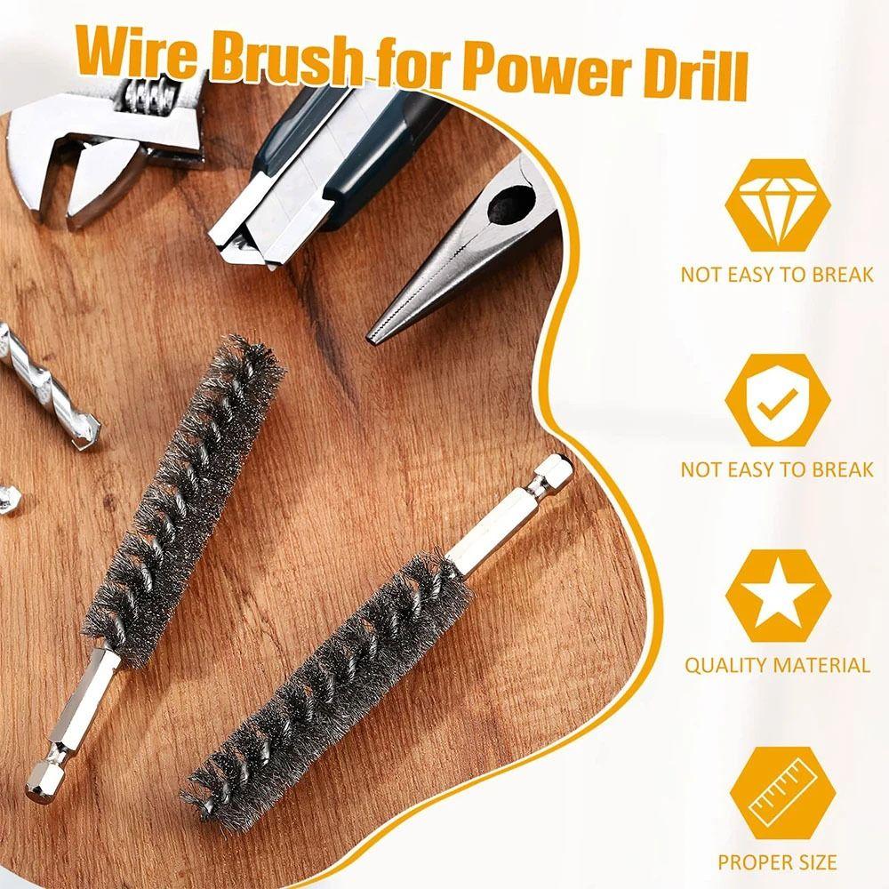 4. Широкое применение: Эти щетки для чистки отверстий имеют широкий спектр применения и могут использоваться с электродрелями, ударными гайковертами, шлифовальными машинами для форм и другими инструментами, что обеспечит вам эффективную очистку, идеально подходит для чистки салонов автомобилей, труб, удаления заусенцев, краски и т. д.. Пятна, ржавчина и т.п.
