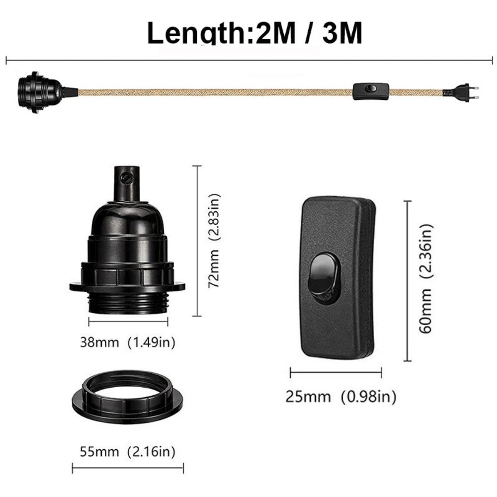 Vintage EU Plug With Switch DIY Light Cord Kit Plastic Socket Lamp Base Rope E27 Lamp Holder
