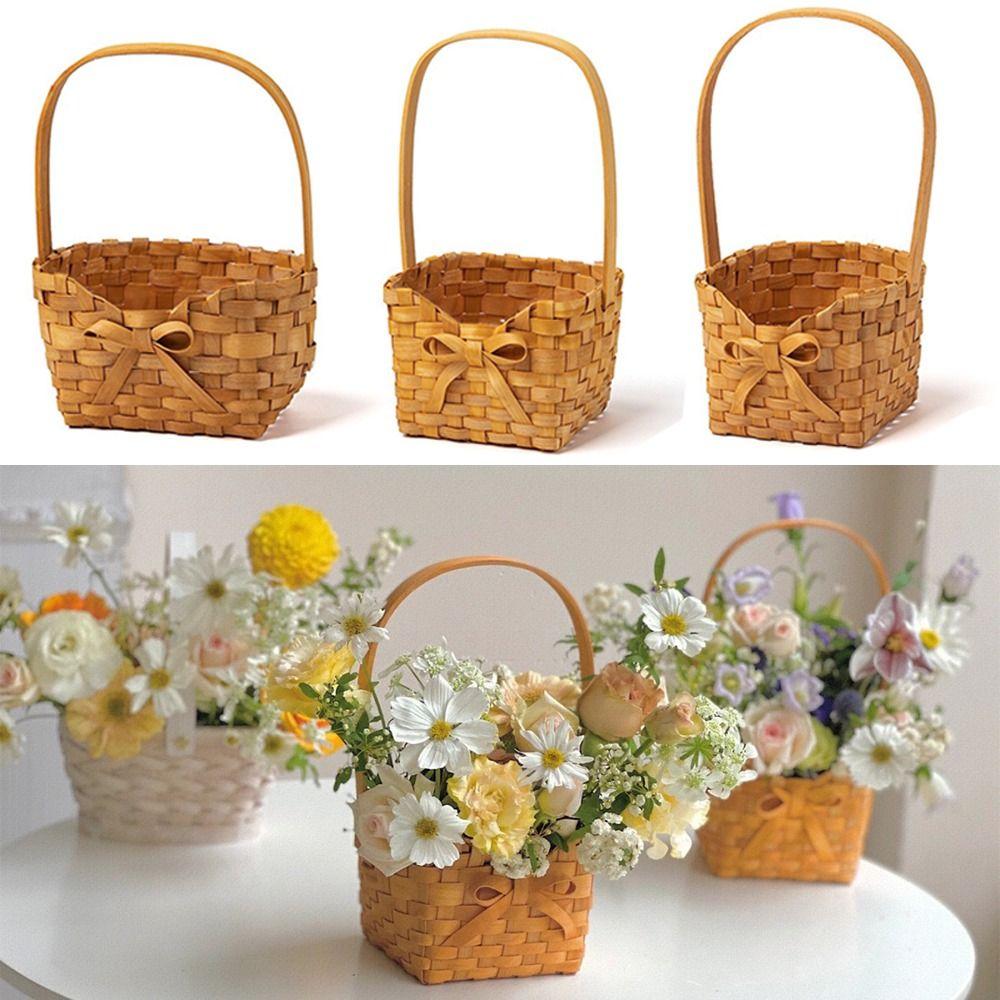 Плетеная вручную корзина для цветов с бантом, контейнер для пикника, корзина для цветочной композиции, свадьба — купить товар онлайн с бесплатной доставкой до всему миру!