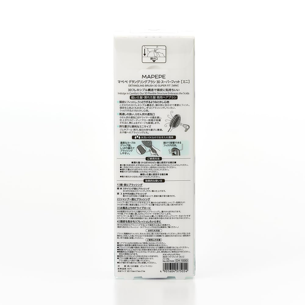 ● Для мокрых или спутанных волос: ● Возьмите небольшую прядь волос и расчешите ее с кончиков, постепенно продвигаясь к корням.. ・ Аккуратно расчесывайте в одном направлении. Не расчесывайте в обратном направлении. ・ Мокрые волосы легко спутываются, поэтому расчесывайте их осторожно. ・ Не расчесывайте запутанные волосы силой. ● Для сухих волос: ● Расчесывайте от корней до кончиков. [Эффективное использование] 1) Чистите зубы утром и вечером. утро: Расчешите перед укладкой... Для послушных, легко укладываемых волос. Вечер: Почистите зубы перед сном... Распутав волосы и ложась спать, вы проснетесь утром с волосами, не запутанными. 2) Расчешите перед мытьем шампунем: Расчесывание волос перед мытьем шампунем распутает их и повысит эффективность шампуня! Гладкие, не спутывающиеся волосы будут пениться даже от небольшого количества шампуня. (Индивидуальные результаты могут отличаться.) 3) Для сушки феном после ванны: Аккуратно расчешите подсушенные полотенцем волосы, чтобы удалить спутанность.. Затем проведите щеткой по волосам и быстро высушите их феном.. *Пожалуйста, держите фен на расстоянии не менее 15 см от волос и щетки.. Не держите фен слишком близко и не подвергайте его воздействию тепла слишком долго, так как это может привести к деформации прибора.. 4) Когда вы хотите освежить кожу головы и поднять настроение: Расчесывание в разных направлениях приятно стимулирует кожу головы, освежая как кожу головы, так и настроение! ●От верхней части ушей до макушки. ●Переход из стороны в сторону. ●От затылка до макушки. *При расчесывании в разных направлениях используйте на сухих волосах. *Будьте осторожны, чтобы не запутать волосы. [Инструкции по уходу] Если щетка загрязнилась или на ней остались средства для укладки волос, протрите ее сухой тканью.. Если есть загрязнения, промойте водой, затем тщательно высушите полотенцем или другим подходящим предметом.. Хранить в чистом, хорошо проветриваемом месте вдали от прямых солнечных лучей.