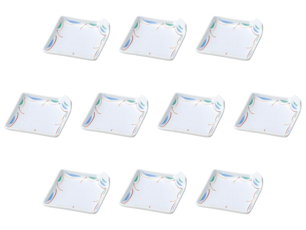 Set of 10 Red-painted Sudare Square Folded Plates [10.8 x 10.8 x 3.2 cm] | Shokado Reinforced Porcelain Setomonohonpo