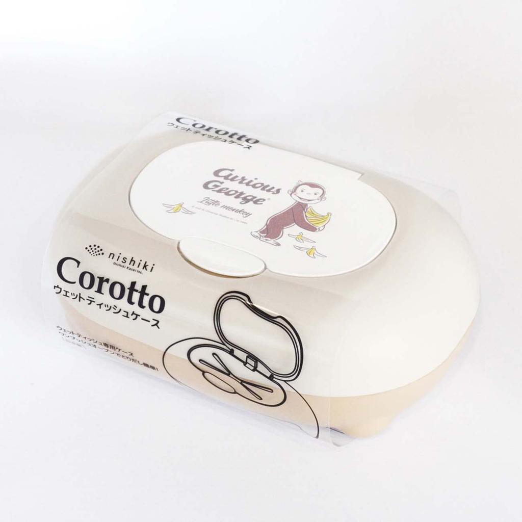 Nishiki Kasei Curious George Wet Tissue Case, One-Touch, LBE×BE-bnn, 19cm W x 13cm D x 7.5cm H, Made in Japan