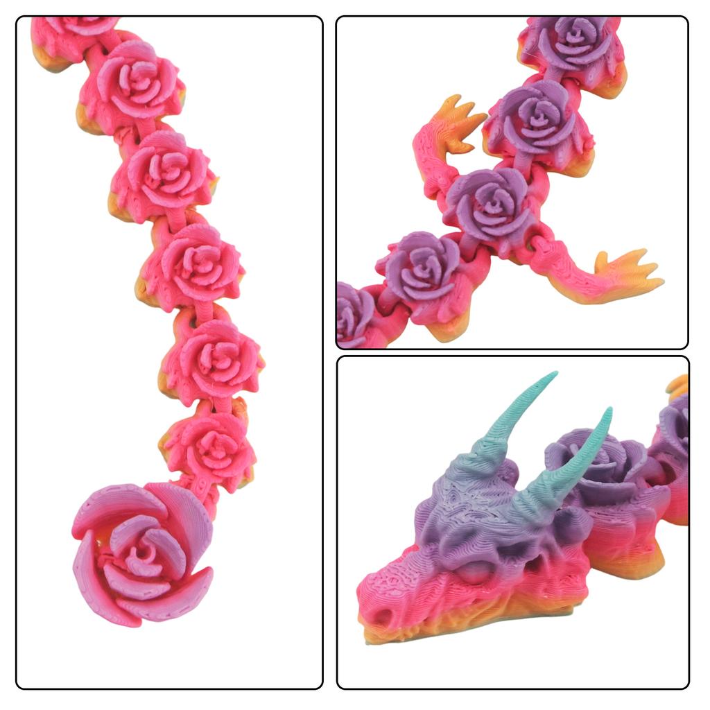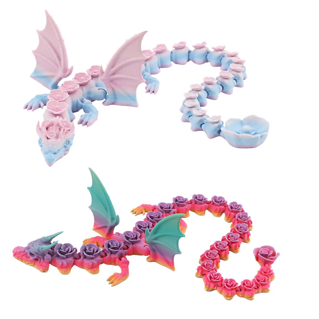 Напечатанная на 3D-принтере матовая градиентная роза, дракон из цветущего персика, подвижные суставы, декоративное украшение, напечатанное на 3D-принтере