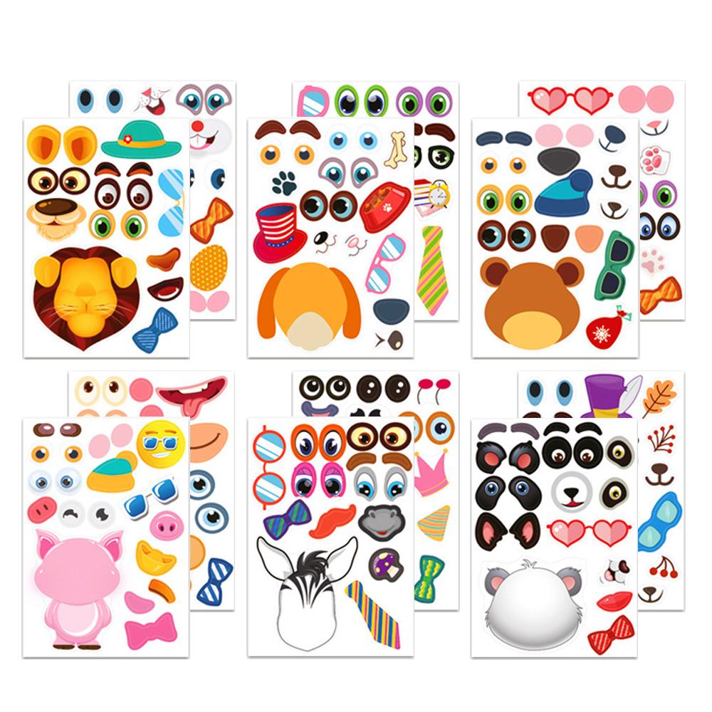 36/48pcs Children Face Changing Sticker Toy Cartoon Animal Stickers Reusable Waterproof Parent Child Interactive Toys TMZ