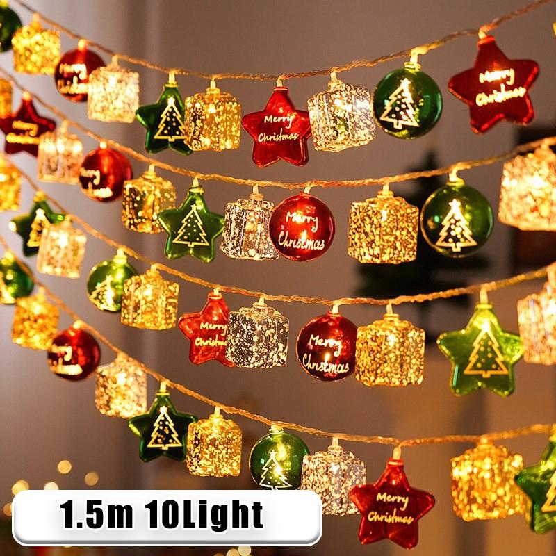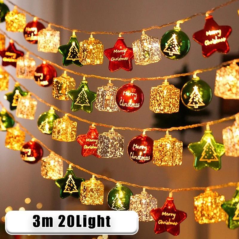 Гирлянда огней для рождественской елки со звездой и шарами для украшения праздничной вечеринки, дома, сада, для создания фестивальной атмосферы