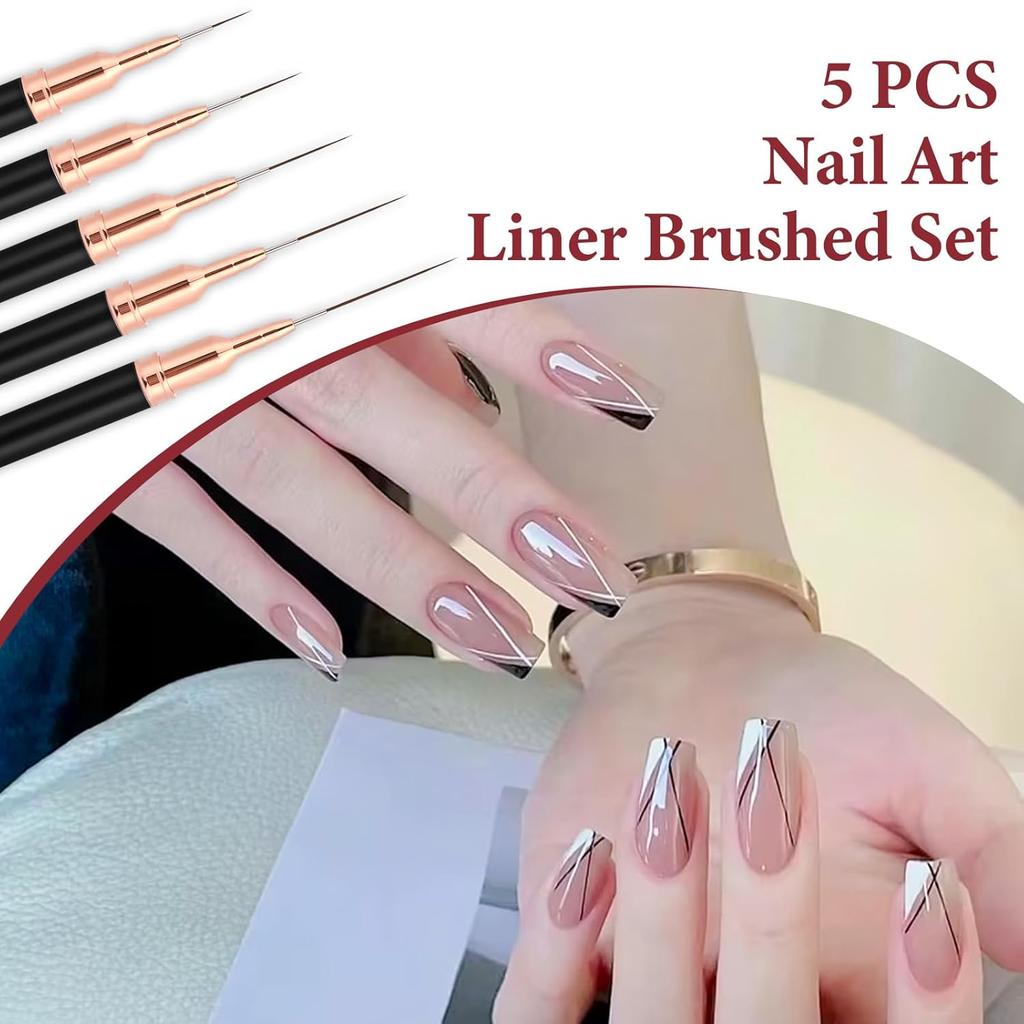 YIKOOLIN 5pcs Nail Art Liner Brush Set UV Gel Nail Brushes Kits French Stripe Line Painting Drawing Flower Pen Manicure Tool