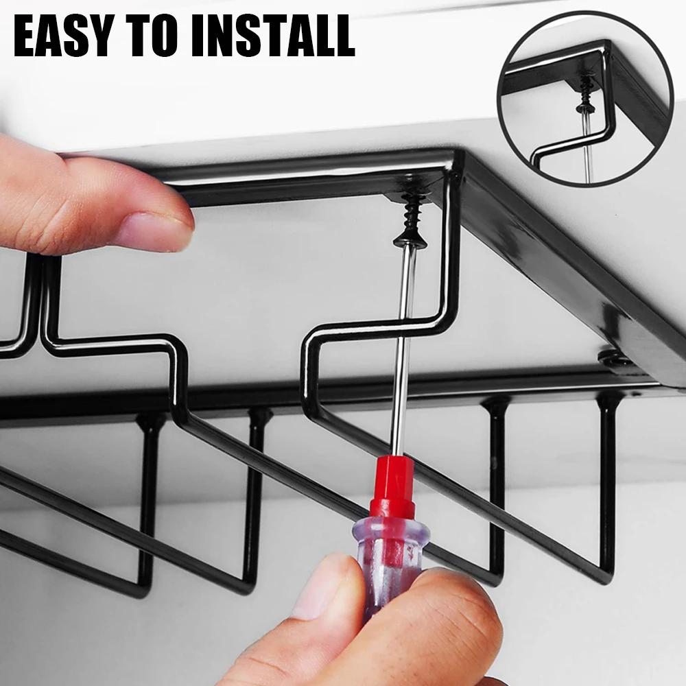 Under Cabinet Stemware Stand Hanging Shelf Bar Hanger Glass Goblet Iron Rack Bar Tool Iron Wine Rack Glass Holder