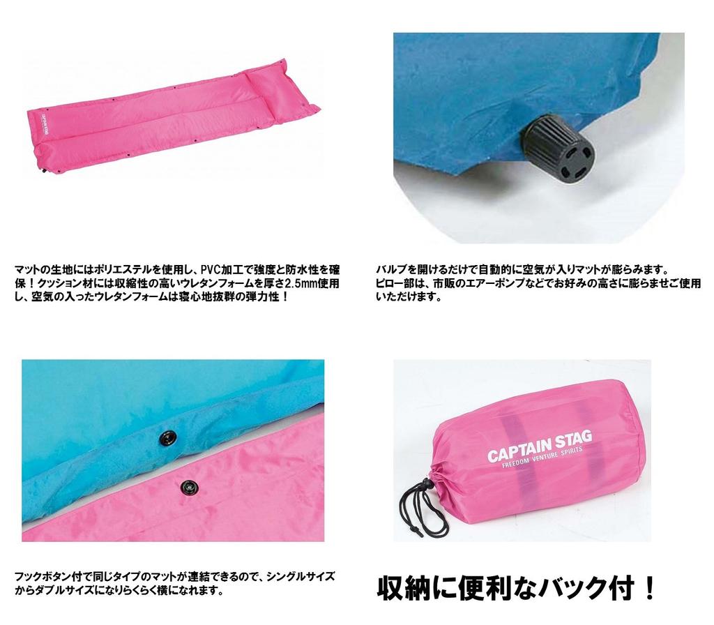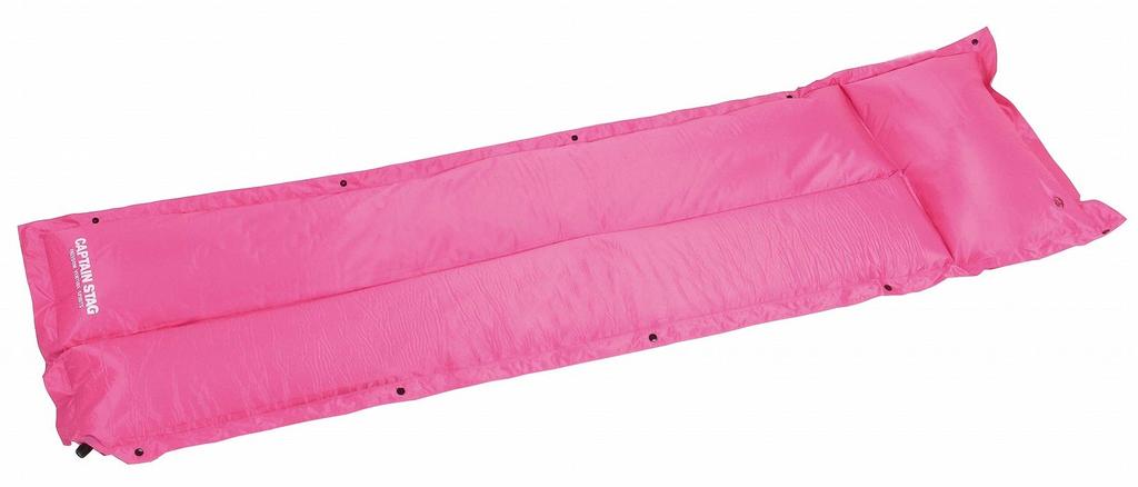 Captain Stag Inflatable Inflating Mat with Pillow, Pink, UB-3029