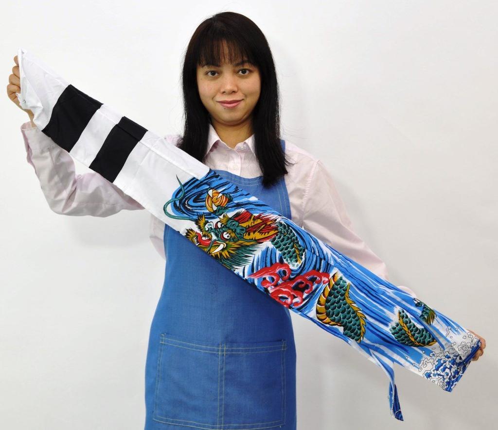 Original from Hidemitsu Doll Workshop. This specially designed carp streamer set is crafted from Yuzen-dyed nylon taffeta.
