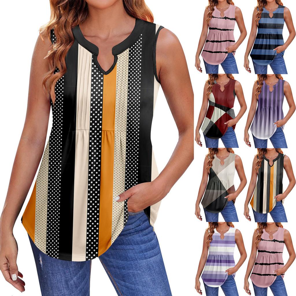 Женские летние майки с V-образным вырезом и принтом, повседневные майки для женщин, свободные рубашки-туники без рукавов