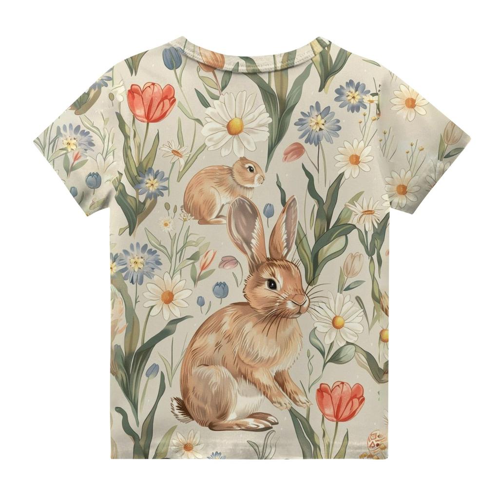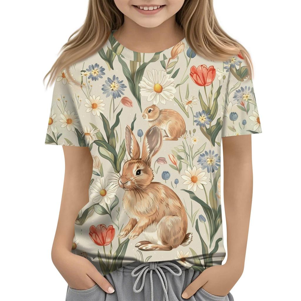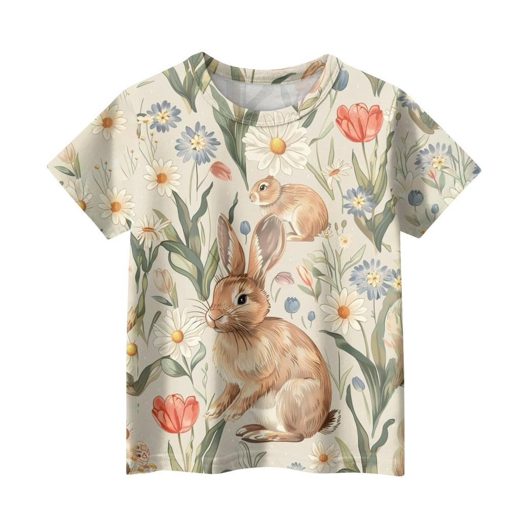 Детская модная повседневная футболка с коротким рукавом и круглым вырезом с растительным принтом