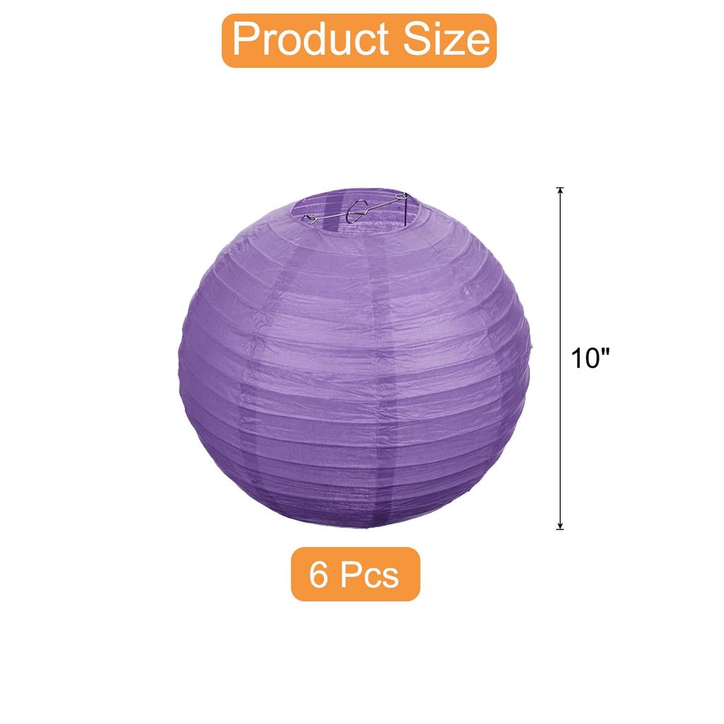 uxcell 6 Dark Purple Paper Lanterns Hanging Round Paper Lantern Lamp, 10-inch, for Christmas, Home Decoration, and Party Decorations