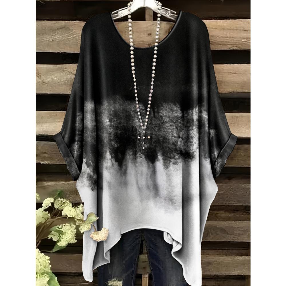 Women 's T-Shirt Simple Color Gradient Print Elegant Irregular Hem O- Neck Women's Clothing Casual T-Shirt Vacation Style Loose