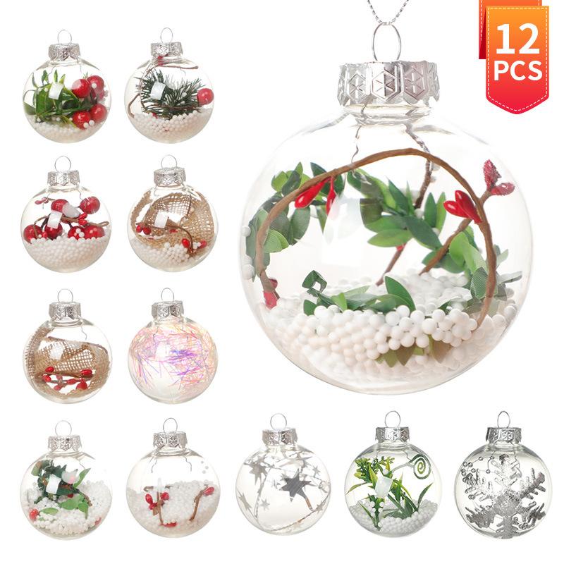 Набор из 6/12 прозрачных заполняемых рождественских шаров для DIY, 6 см, пластиковые шары для рукоделия, праздничные украшения для елки, электрический праздничный декор