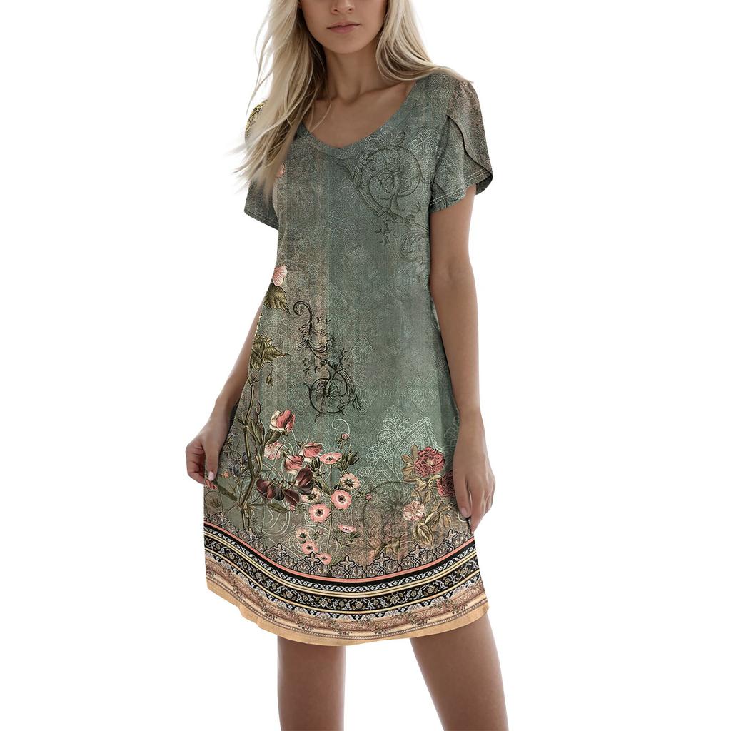 Женское модное повседневное короткое платье с принтом и V-образным вырезом с коротким рукавом
