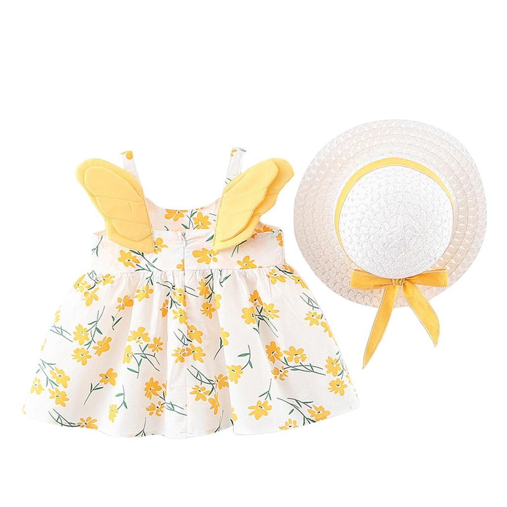 Летний комплект для девочек без рукавов с милым принтом принцессы в платье и шляпе