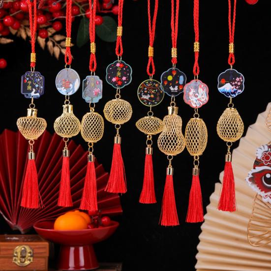 Отпразднуйте Новый год с этим изысканным новогодним подвесом, универсальным украшением, идеально подходящим для дверей, окон, столов и салонов автомобилей.. Изготовлено из высококачественного полого металла с дизайном фонаря и тыквы-горлянки, дополнено элегантными кисточками и изысканно детализированными подвесными бирками, что представляет собой изысканную альтернативу обычным пластиковым украшениям..