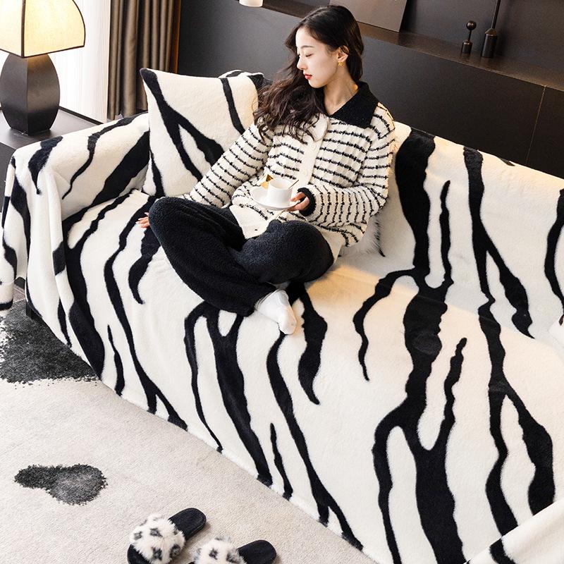 Кролик с принтом зебры, плюшевое полотенце для дивана, осенне-зимняя универсальная нескользящая подушка для гостиной, высококачественный чехол, утолщенное зимнее одеяло