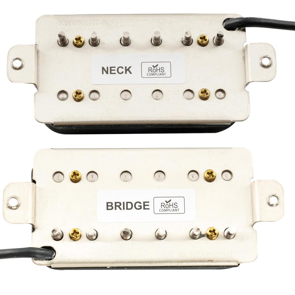 DC Resistance (Neck/Bridge): 7.5K/8.8K. Inductance (Neck/Bridge): 4.0H/5.0H. Tolerance: Single coil 0.5K, Humbucker 1K. Magnet: Alnico 5, Nickel Silver Cupronickel Plate, PC Bobbin. Pole Piece: Single Row Adjust Screw. Cable: 4 Conductor