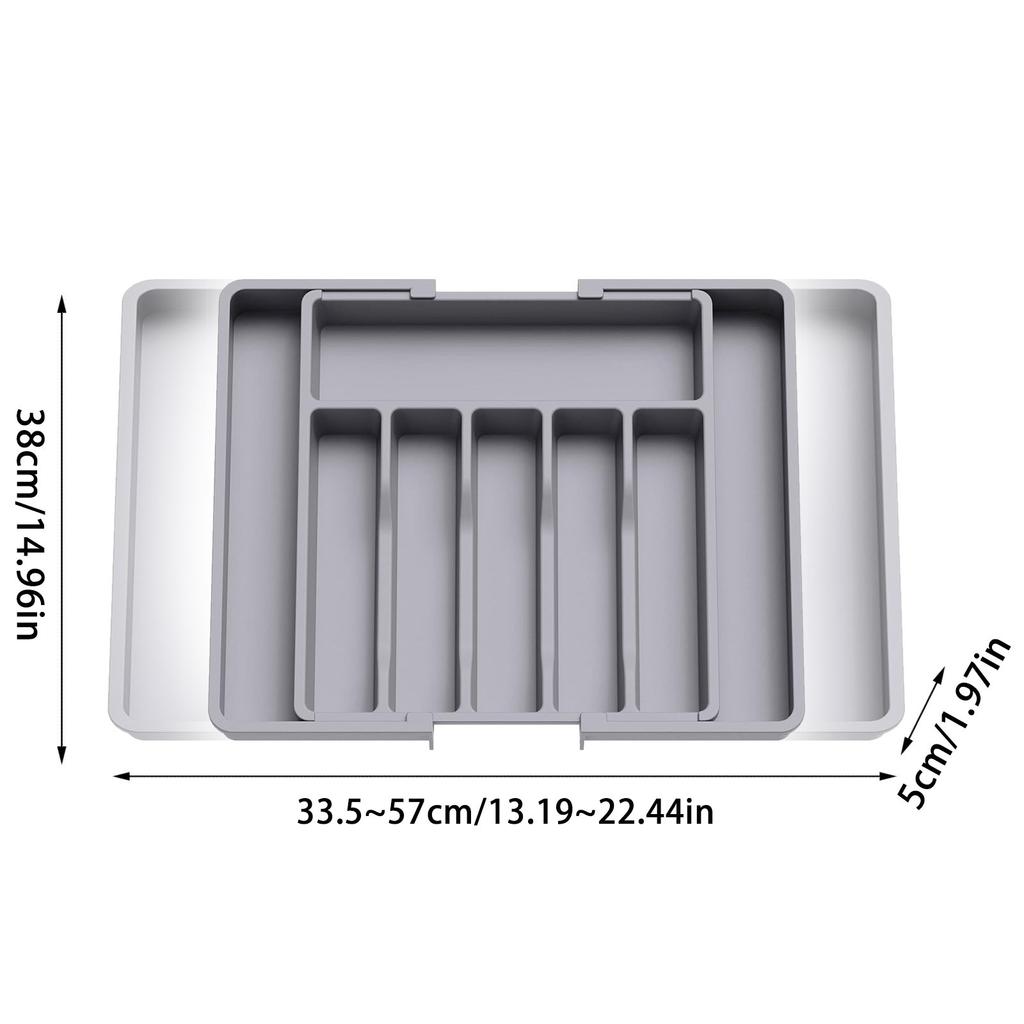 Адаптируйте кухонный органайзер для хранения вещей в соответствии с вашими конкретными потребностями благодаря оригинальной выдвижной и съемной конструкции, которая идеально подходит для ящиков различных размеров и форм.. Этот органайзер для кухонной утвари имеет ширину 8,7 дюйма в сложенном состоянии и 14,8 дюйма в полностью разложенном виде.
