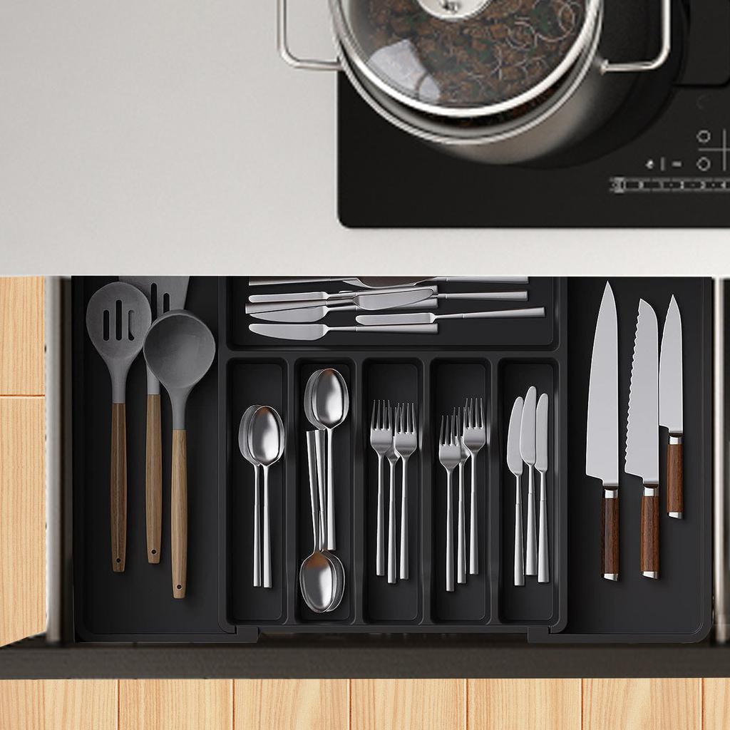 Органайзер для столовых приборов — расширяемый органайзер для кухонных ящиков, регулируемый органайзер для посуды, органайзер для столовых приборов для вилок, ножей, многоцелевой кухонный орган