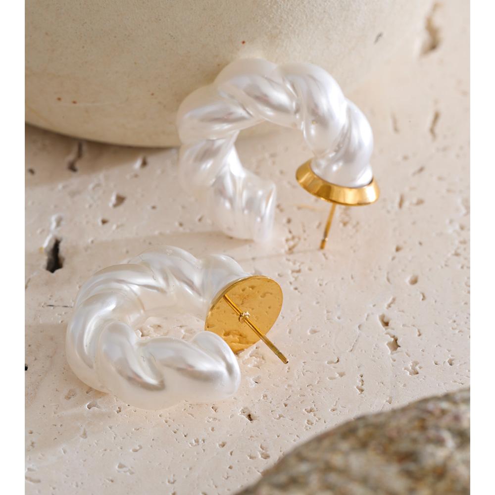 Eetit Искусственный жемчуг Витые Геометрические Шикарные Легкие Серьги для Женщин Нержавеющая Сталь Ежедневные Современные Модные Ювелирные Изделия Водонепроницаемые