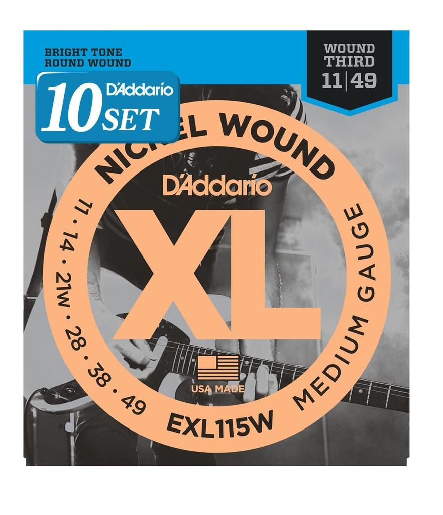 Electric Guitar XL Pack of EXL115W D'Addario Strings, Nickel, .011-.049, 3-String Wound, Blues/Jazz Rock, 10,