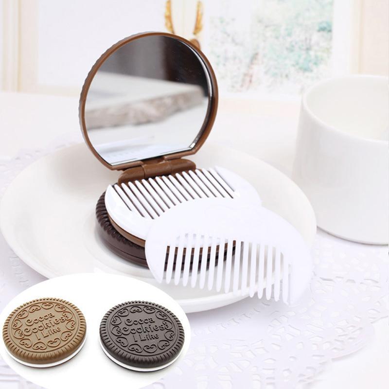 Складное зеркало для макияжа в виде шоколадного печенья, женская переносная сумка, переносное зеркало для макияжа, набор расчесок для зеркала