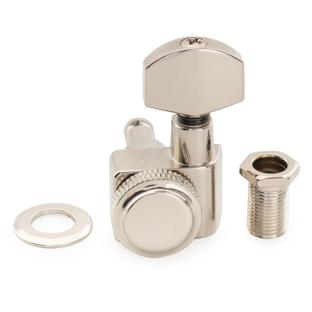 Musiclily Pro Left-Handed 6-Piece Locking Tuning Pegs with 2-Pin 18:1 Gear Ratio, Hex Buttons, for Fender Strat, Telecaster, and Electric Guitars, Nickel