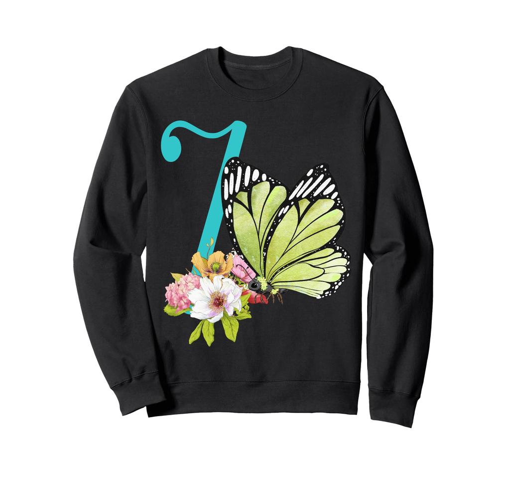 7th Birthday Butterfly Party Girls Green Teal Kids Seven 7 Sweatshirt