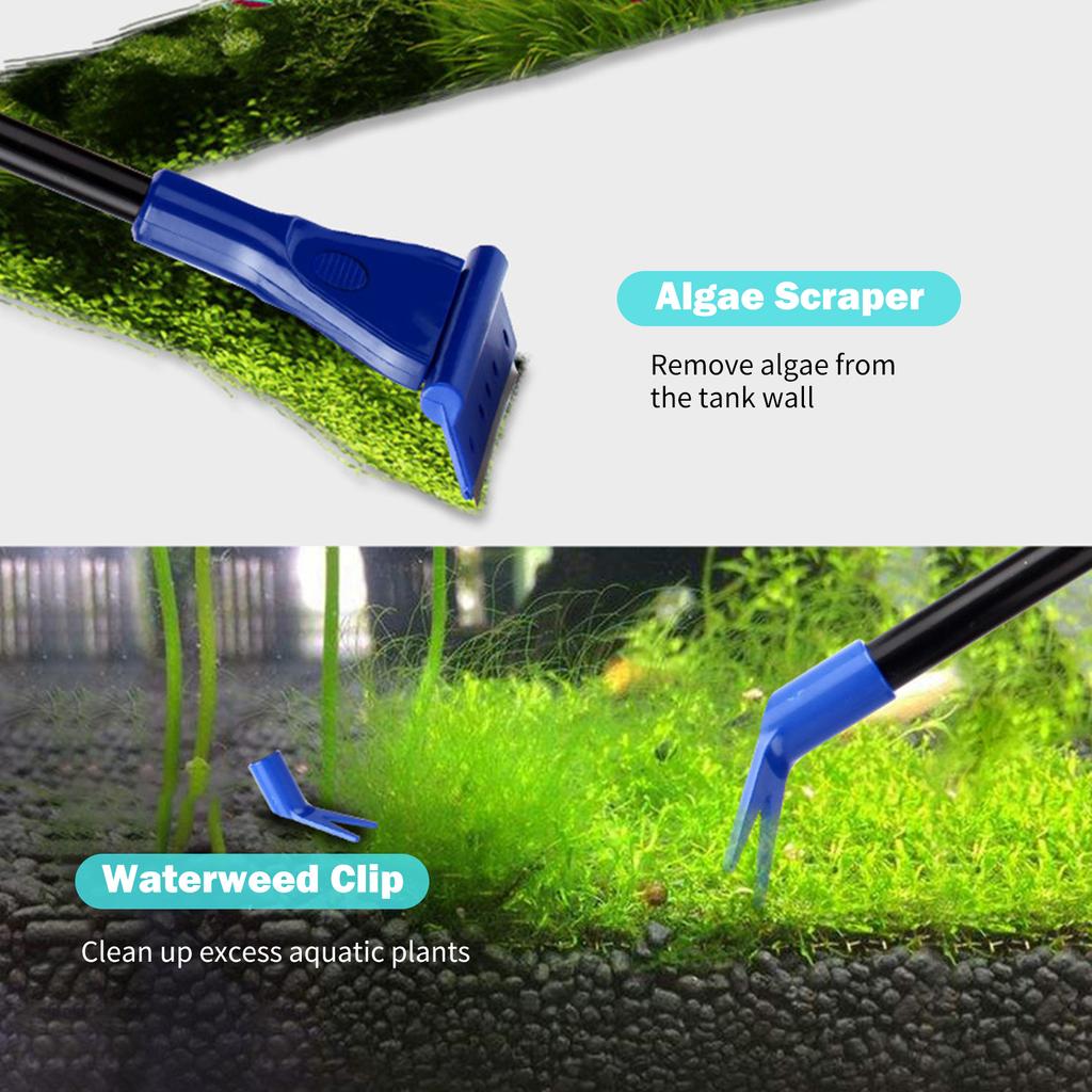 6 In 1 Fish Tank Cleaning Tool Algae Cleaning Tool with Gravel Rake Brush Fish Net Scraper Fish Tank Telescopic Long