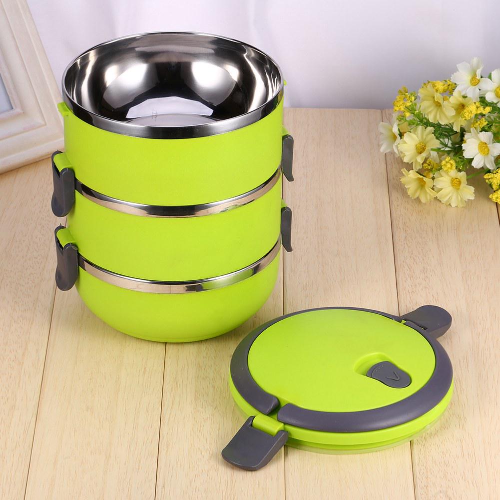 Round 3 Layer Durable Stainless Steel Lunch Box Bento Picnic Food Container