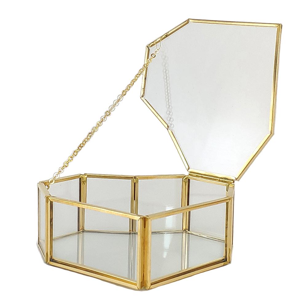 Перекидной Ювелирный Бокс из Геометрического Стекла в Форме Сердца Любви Стеклянная Коробка для Колец Многофункциональная Витрина для Ювелирных Изделий