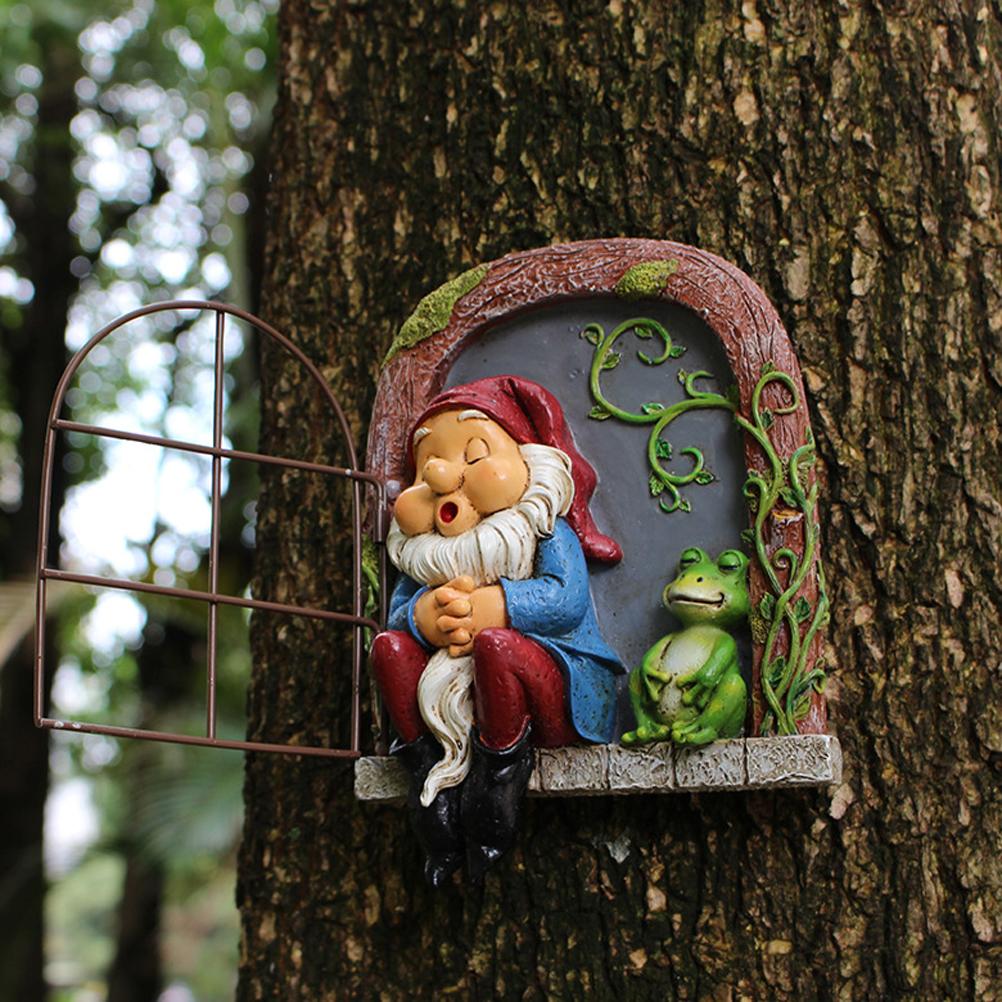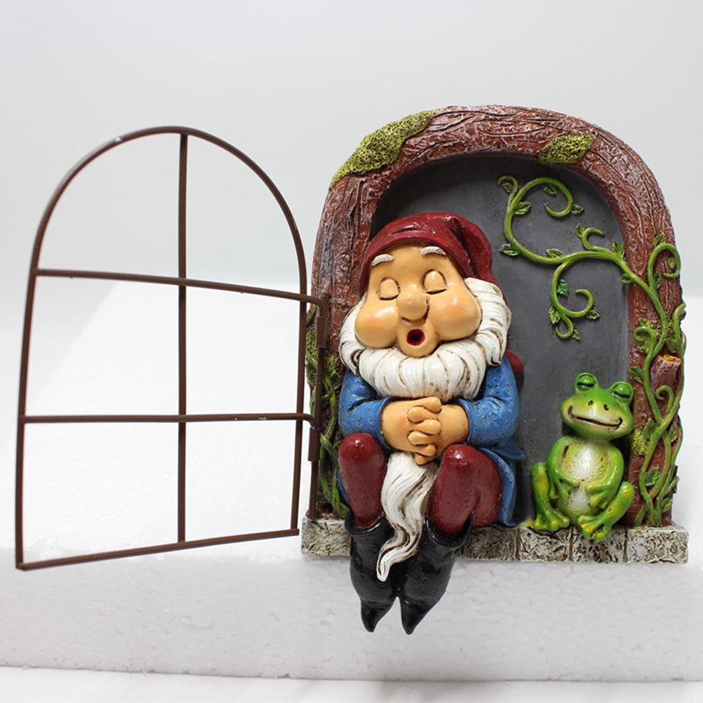 Mini Garden Resin Crafts Decoration Gnome Window Sleeping Garden Sculpture Gnome Outdoor Ornament Decoration