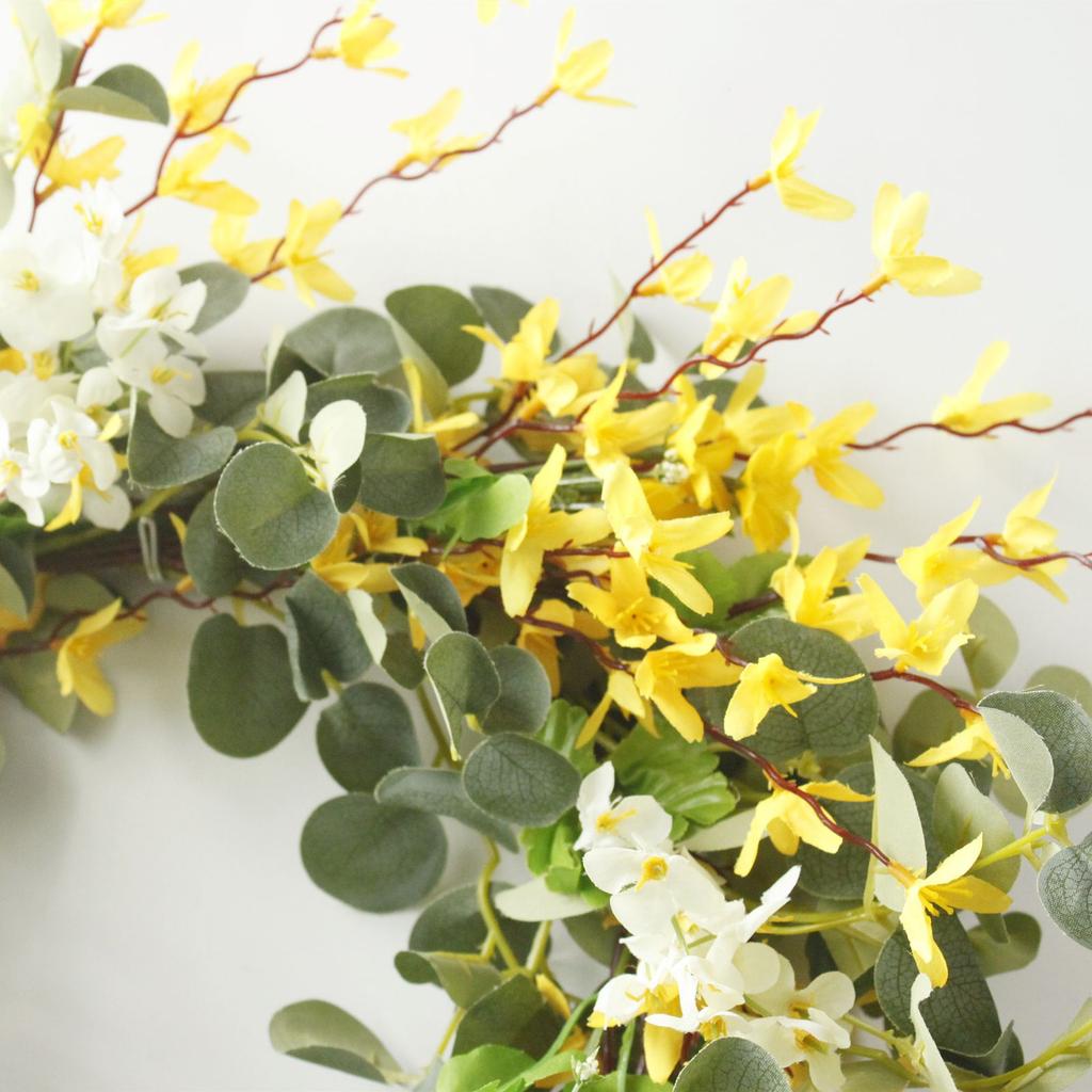 Artificial Spring Wreath for Front Door Yellow Flower Floral Wreath for Indoor Outdoor Home Decor 19.7in Outer Diameter