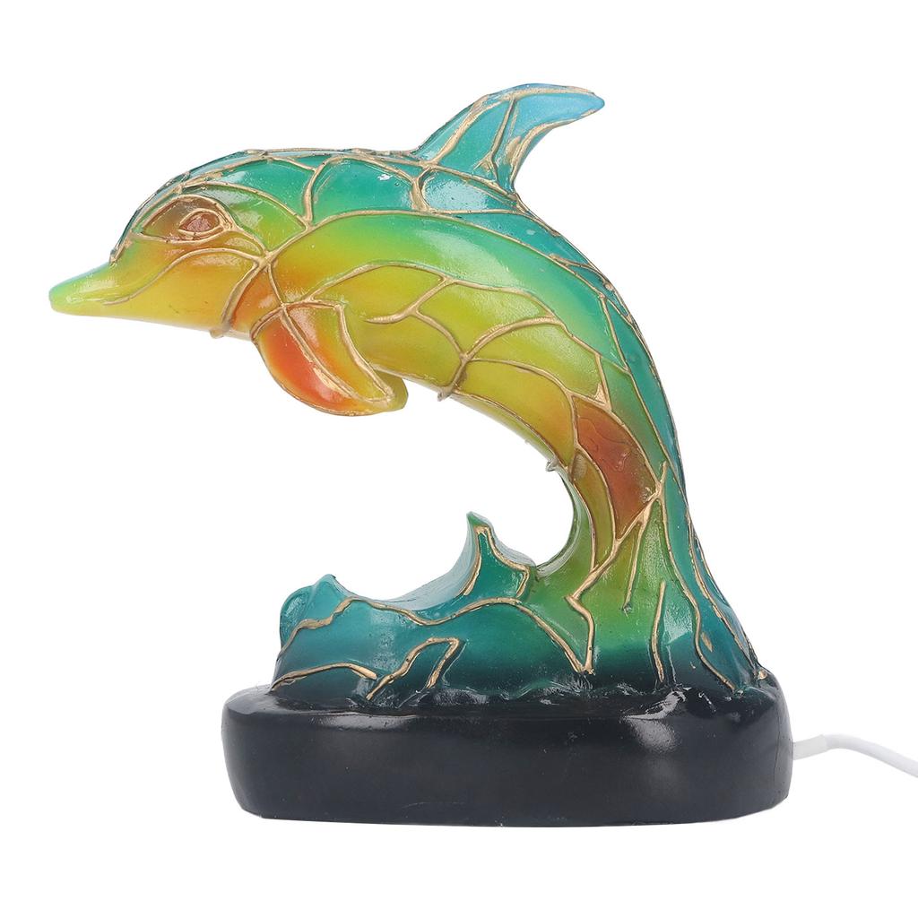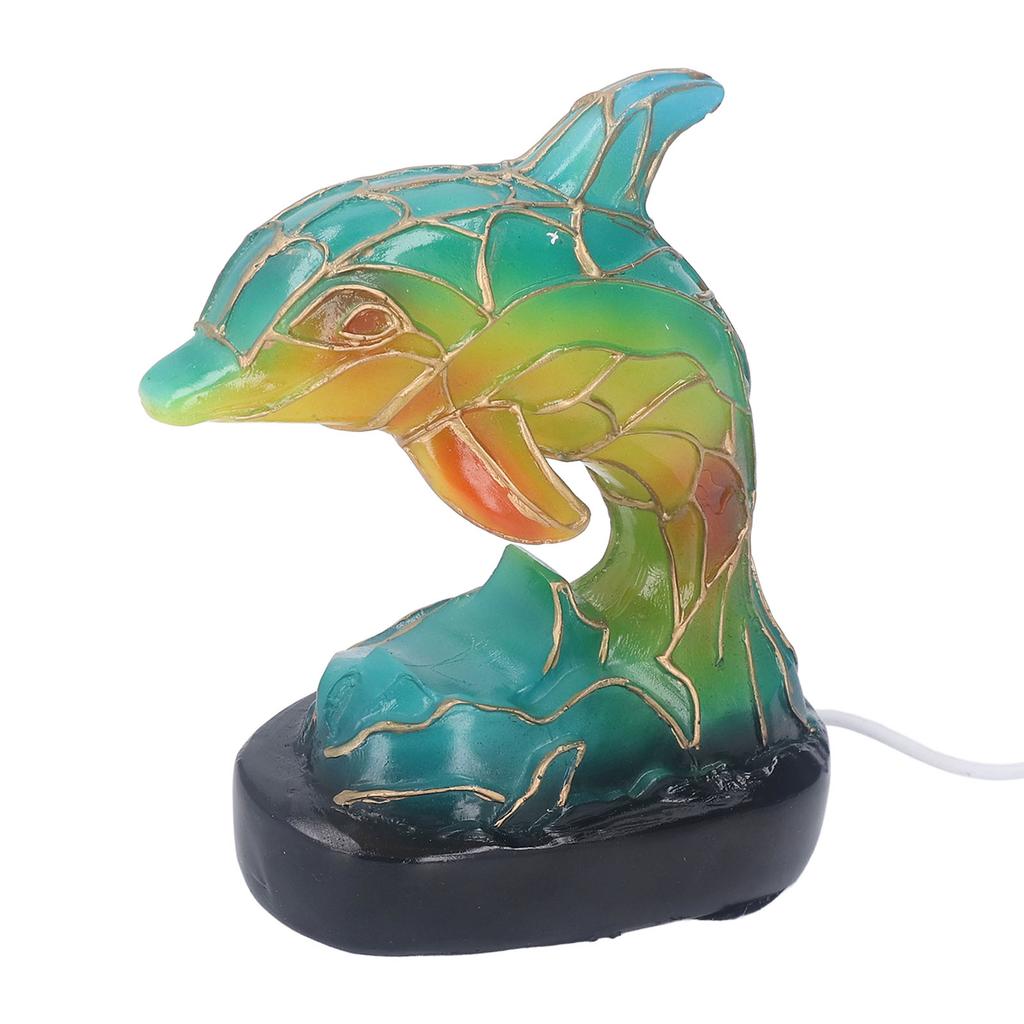 Animal Table Lamp Retro USB Plug in Decorative Resin Dolphin Shape Desk LED Night Light for Bedroom Living Room