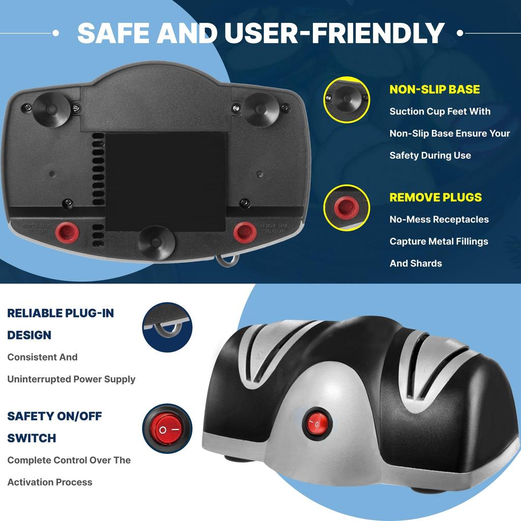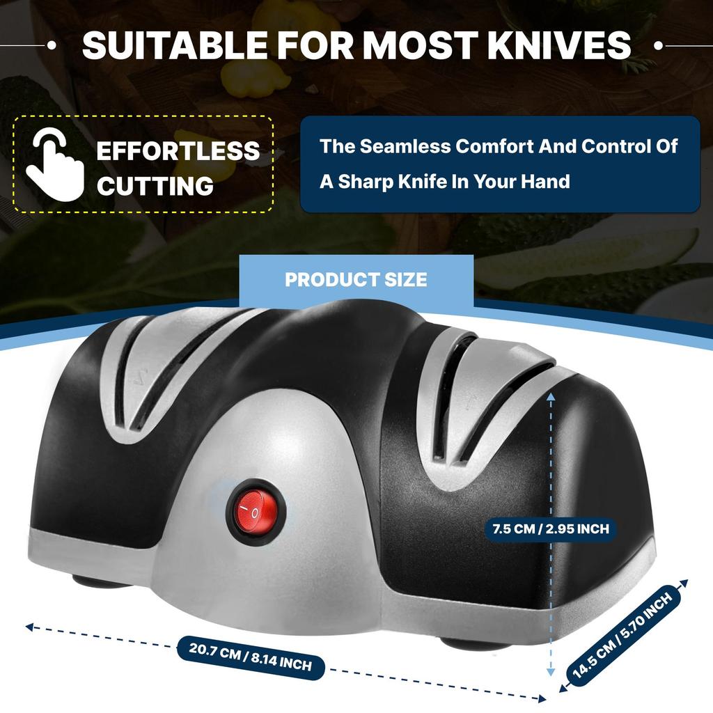 Электрическая точилка для ножей с запуском одним касанием, 2-ступенчатая система заточки лезвий с автоматическим отключением при перегрузке - Ультра тихая