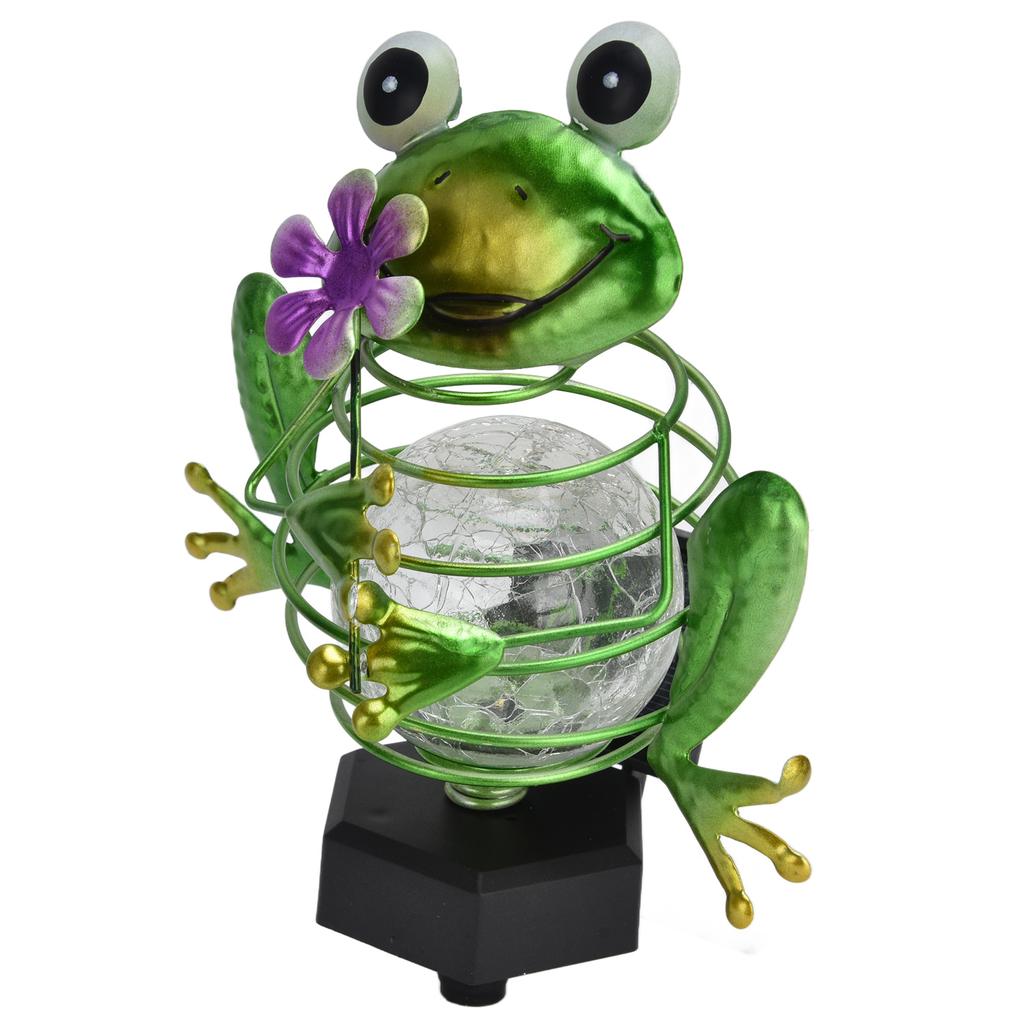 Уличный светильник-фигурка лягушки, теплый светодиодный свет, шар из потрескивающего стекла, садовый колышек-светильник для газонов, террас, дворов