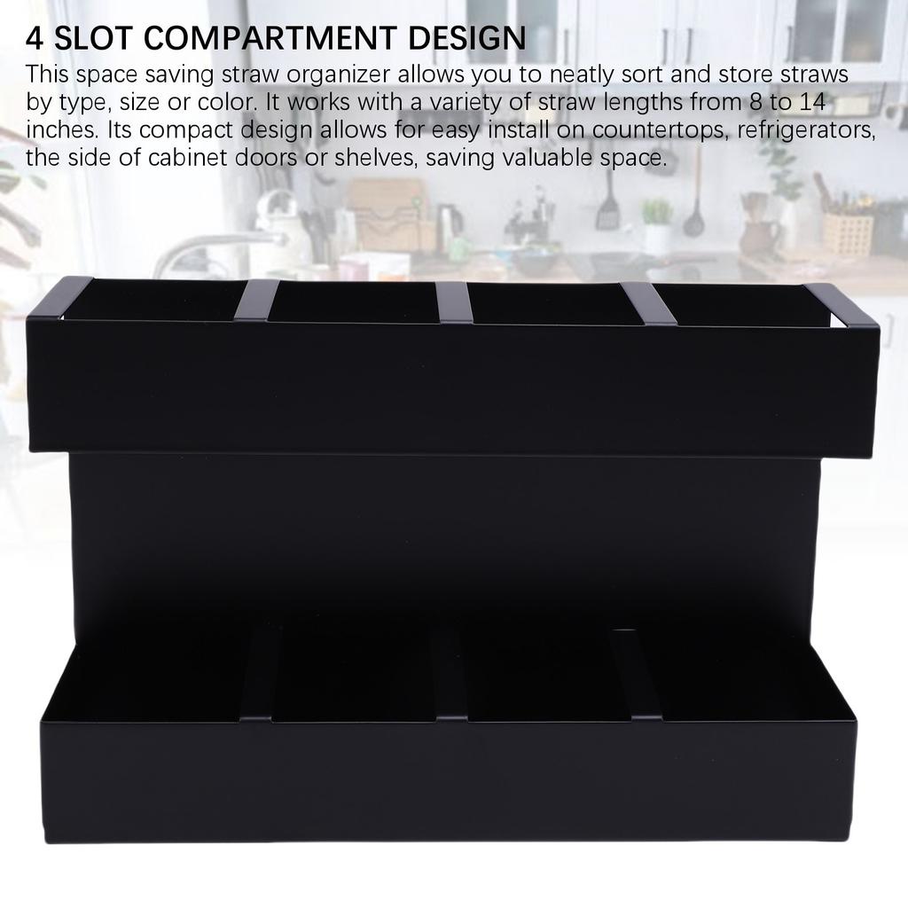 Straw Holder Chopstick Organizer 4 Compartments Straw Dispenser with Double Sided Adhesive Tape Label Stickers for