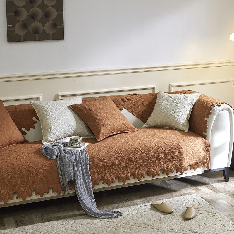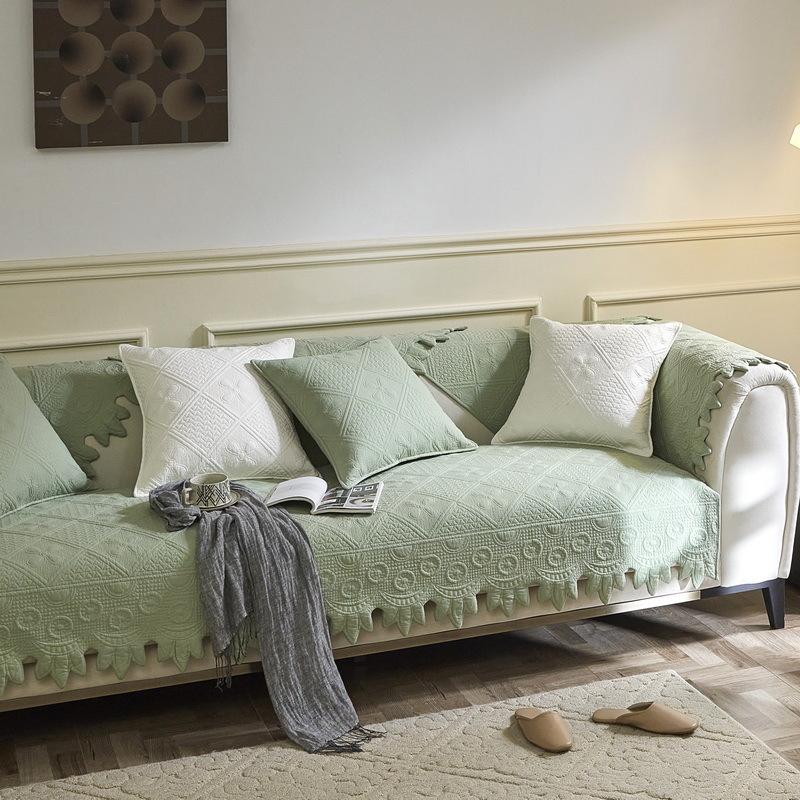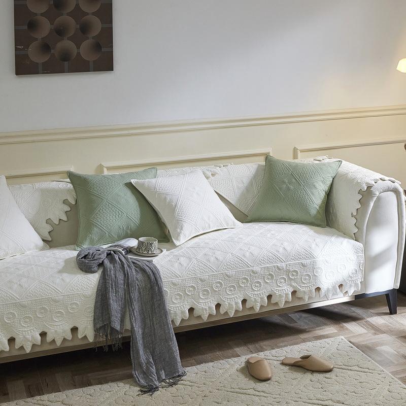 Размер диванных чехлов, которые вы выберете, должен быть на 20 ~ 30 см больше, чем фактический размер дивана. Остаточную часть можно повесить вниз, чтобы защитить боковую часть дивана или заправить под диван, чтобы предотвратить скольжение.