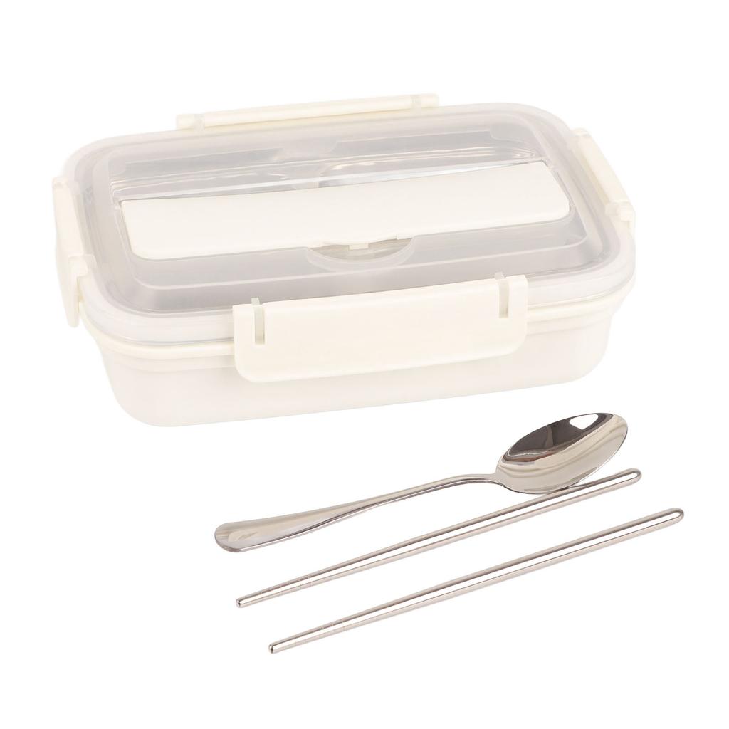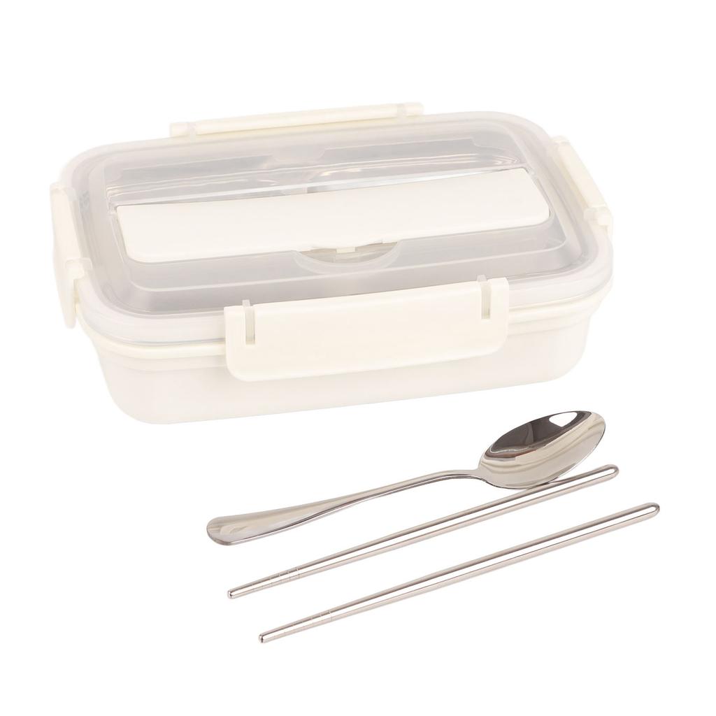 Lunch Box 4 Compartments Design 304 Stainless Steel Matching Tableware Portable Lunch Containers for School Office White