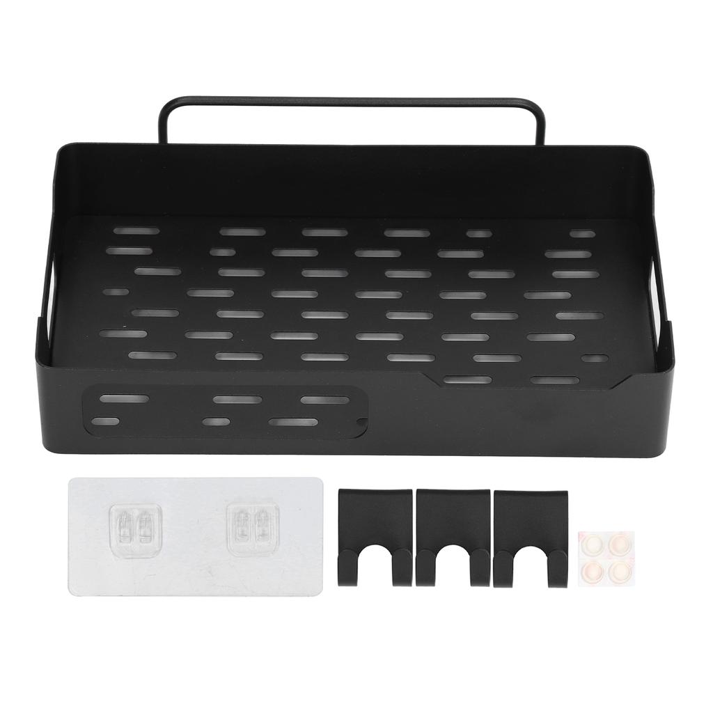 Storage Rack Wall Mounted Punch Free Stainless Steel Mesh Base with 3 Hooks for Kitchen BathroomBlack