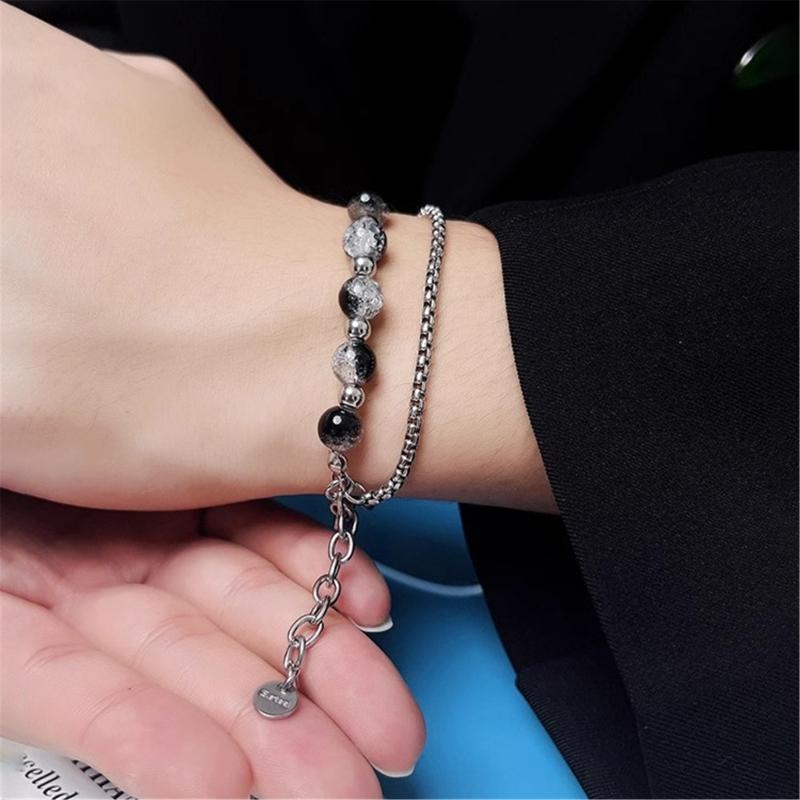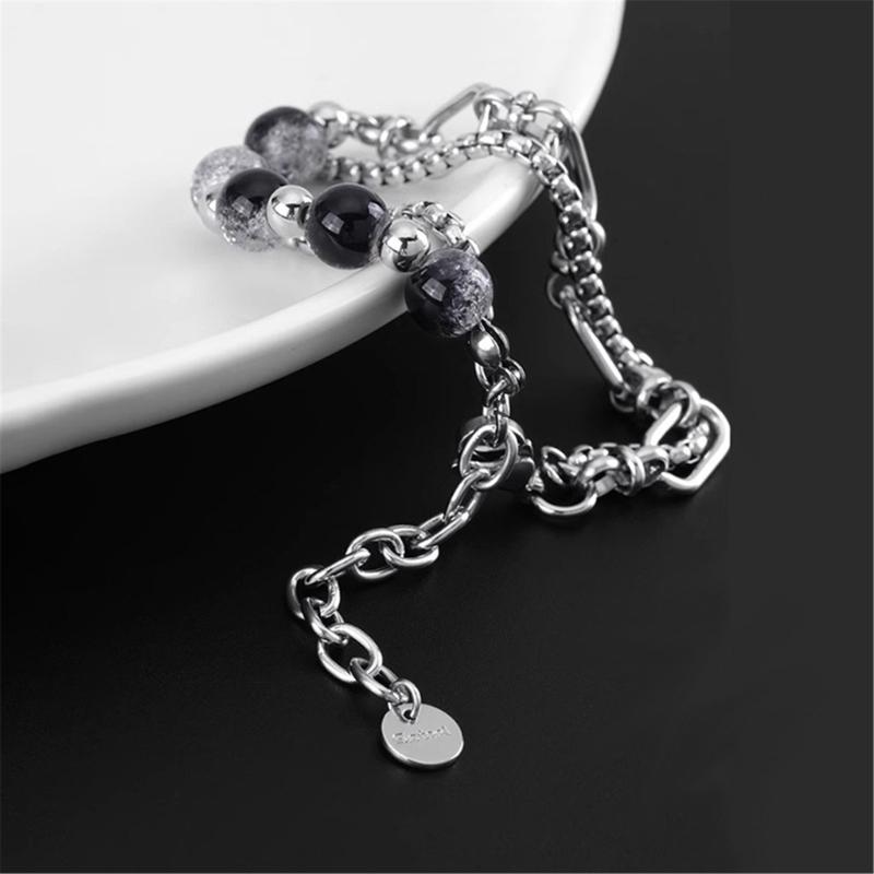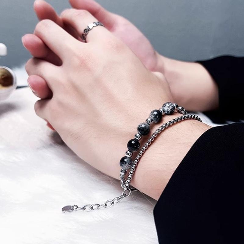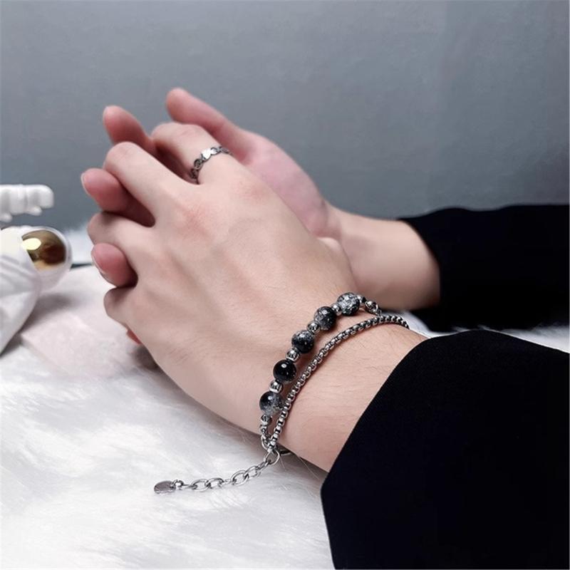 Браслет из нержавеющей стали двойной, браслет из бусин, браслет-цепочка, подходит для мужчин и женщин, модная бижутерия, подарок