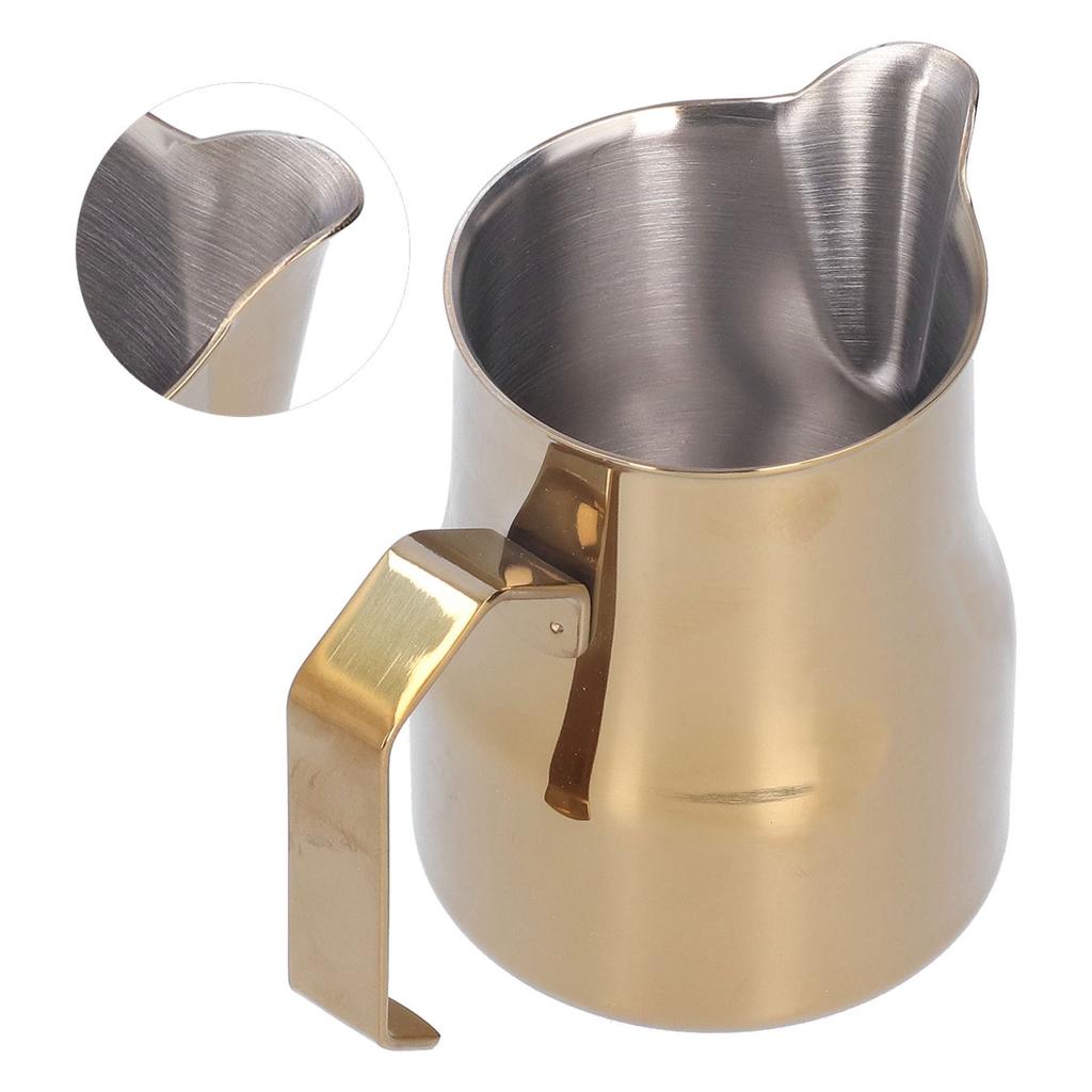 Milk Frothing Cup Stainless Steel Potbellied Fancy Coffee Frothing Jug Pitcher for Home Office(Gold 350ml)