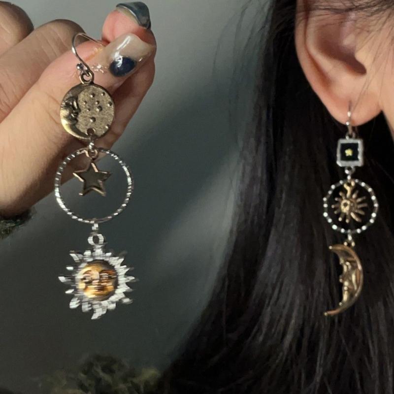 Винтажные серьги-подвески с подсолнухом, асимметричные серьги-капли в виде звезды, солнца, луны, аксессуары, модная бижутерия для женщин