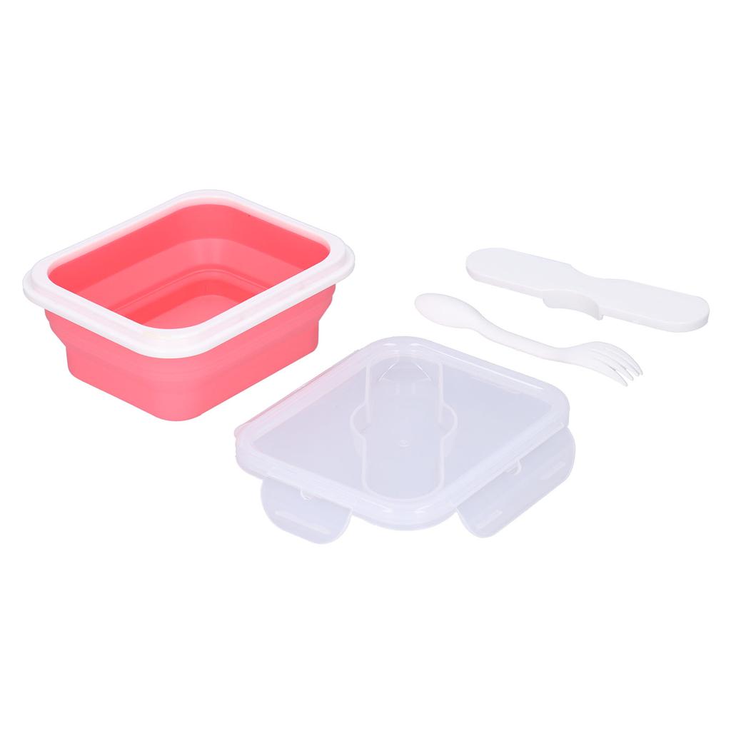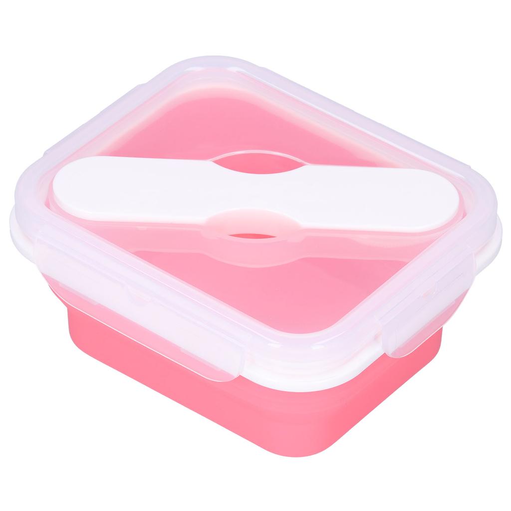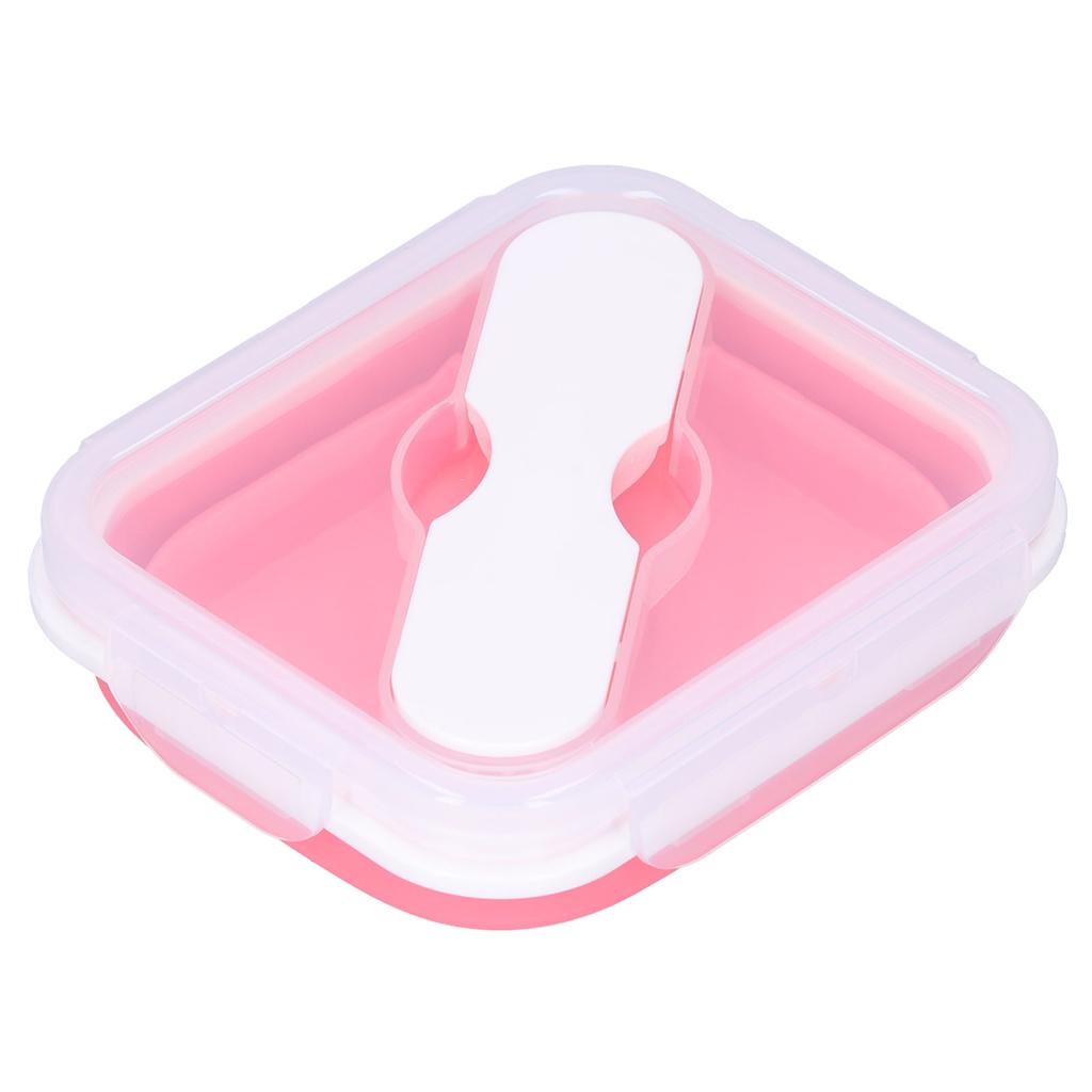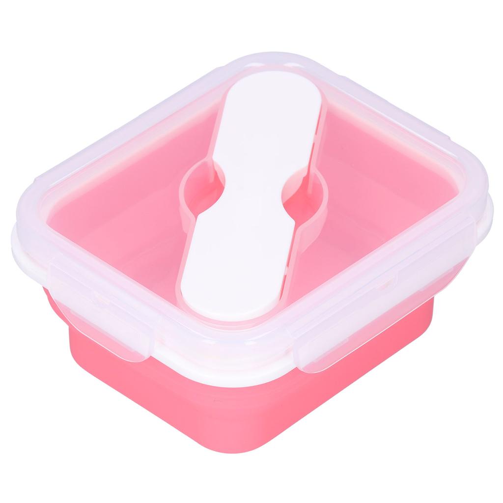 Силиконовый изоляционный контейнер Портативный ланч-бокс со встроенной вилкой ложкой для офиса школы Розовый 600 мл