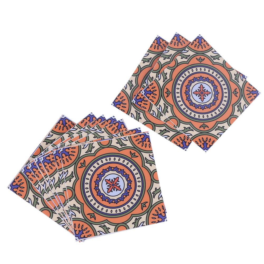 10Pcs Household Bohemian Style Waterproof Non Slip Tile Floor Wall Sticker Decoration 15x15cm(Type 1 )