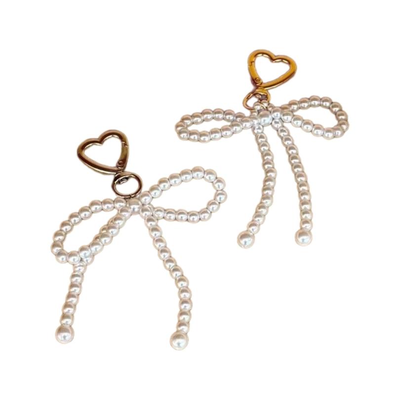 Брелки с подвесками в виде сердца с жемчугом и бантом, милый кулон, украшение для ключей, рюкзака, украшения для женщин и девочек